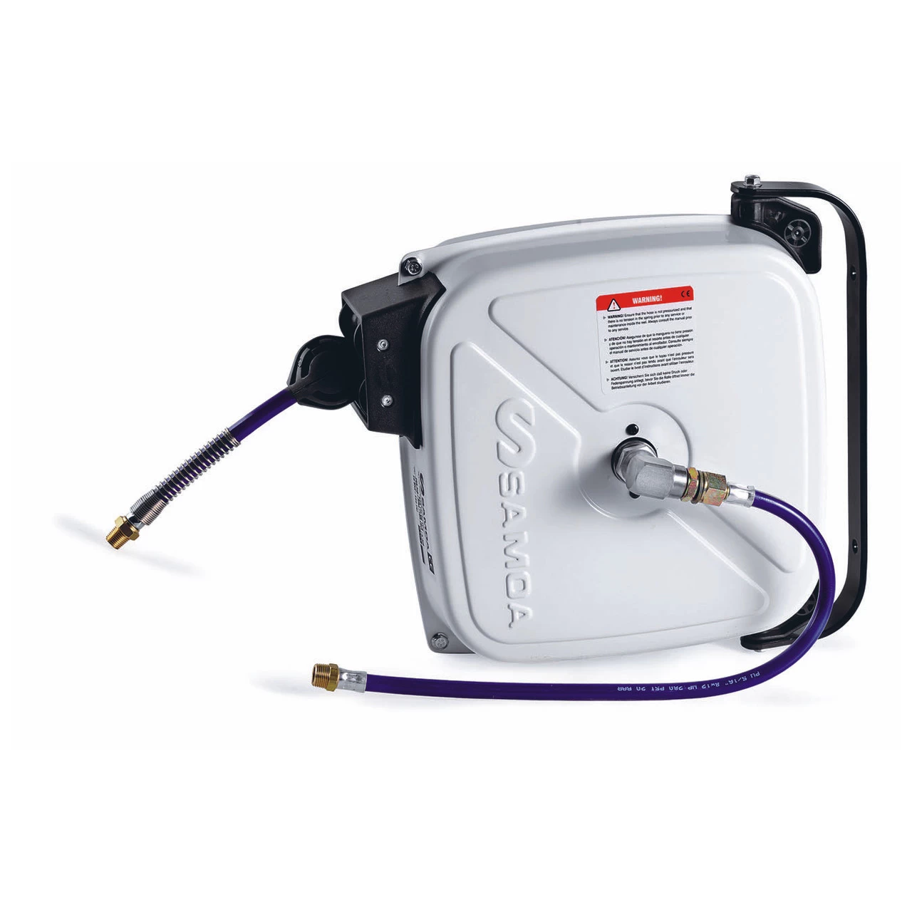 Compressed air hose reel with 12m x 10mm hose.