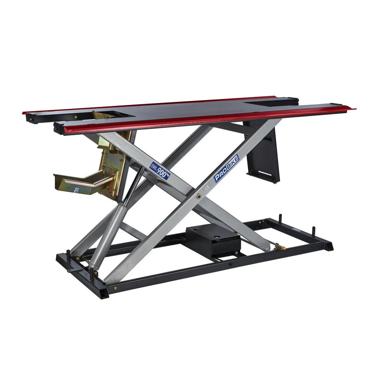 Supplied with 2 x mounting rails plus fixing bolts. The rails bolt to the lift table enabling the clamp to be adjusted back and forth for different length bikes. Additional bolts secure the clamp in position. Very robust and easy to use. Single person operation with no stooping to tighten clamp.