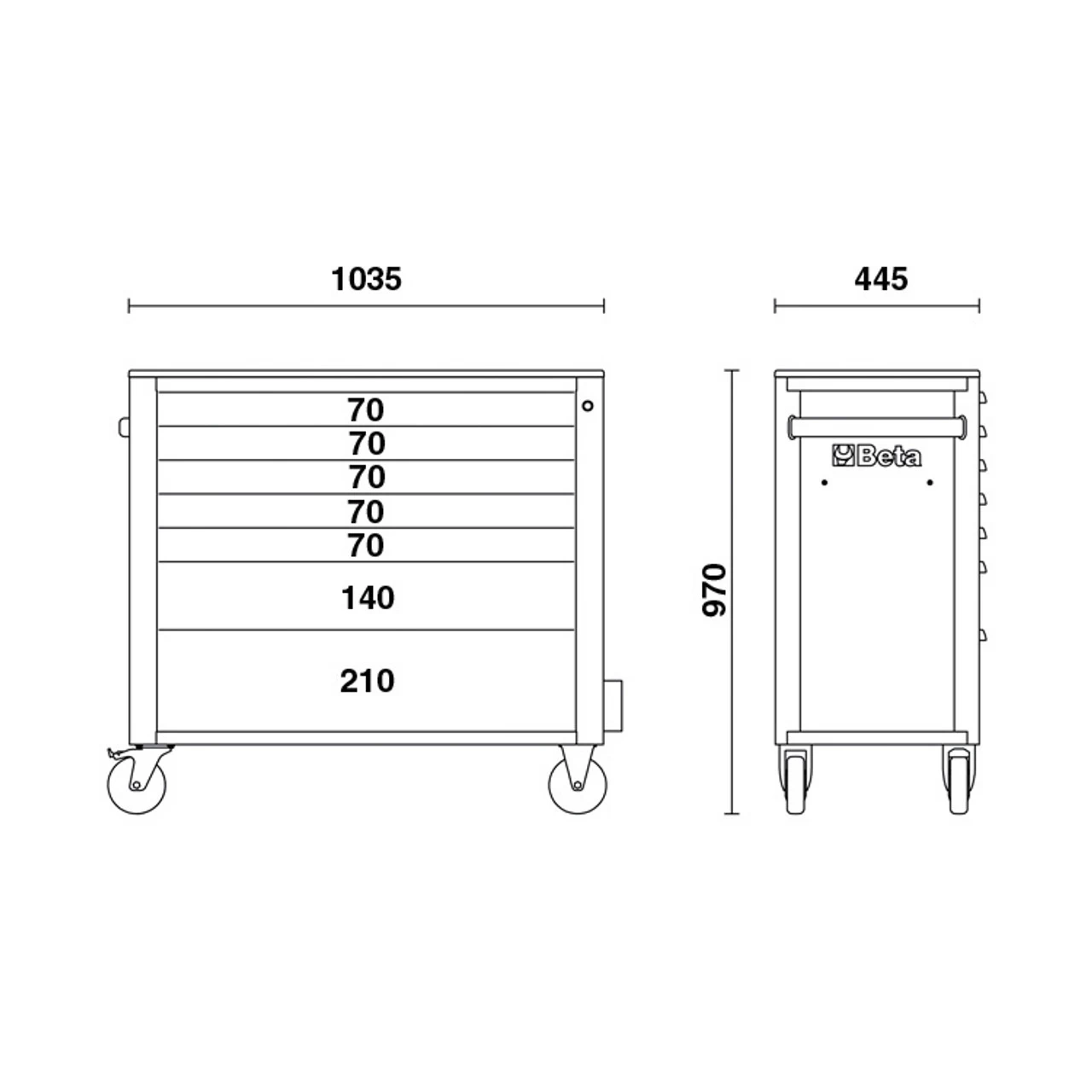 • 5 drawers, 70 mm high