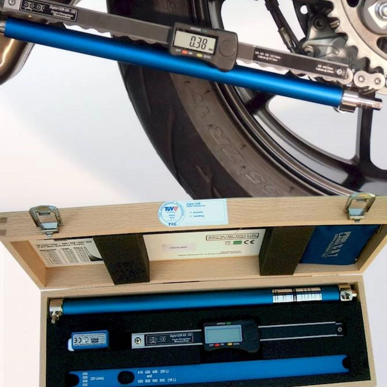 The Digital Chain Stretch Measurement Tool is also available as a package, with the PROCAT-L Laser Chain Alignment Tool included. The wheel alignment can then be quickly checked and adjusted after chain measurement (and replacement if necessary).Â