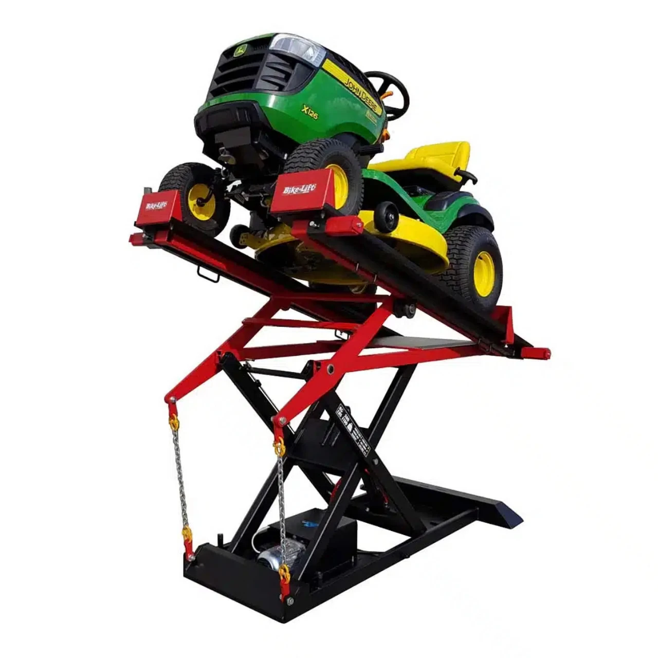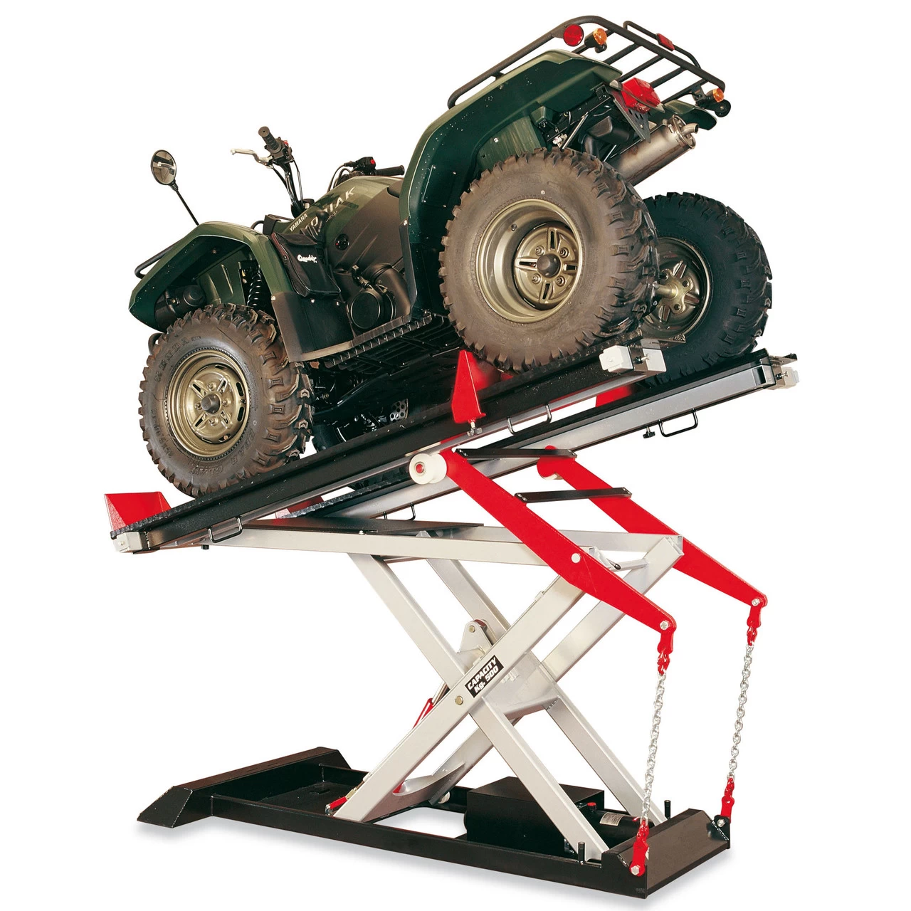 FROG 500 with electro-hydraulic pump. Specifically designed to raise ATV / quads, snowmobiles, jetskis, lawn tractors and large mowers.Â