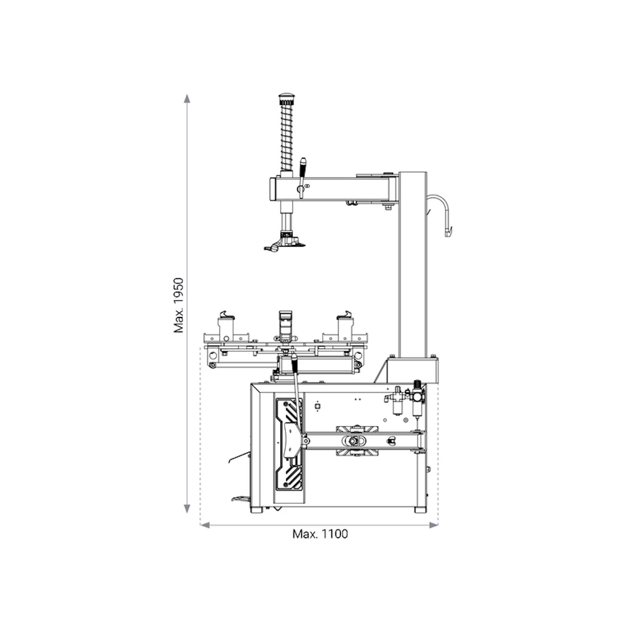 - Rigid column / side arm design – this is the strongest and most wear-free configuration available for a tyre changer. By eliminating all the highly stressed and wear prone mechanisms found in ’tilt-column’ machines, this design will always maintain its integrity and strength. This ensures that rim protection and high accuracy is maintained over years of constant use. It is also the most compact configuration.