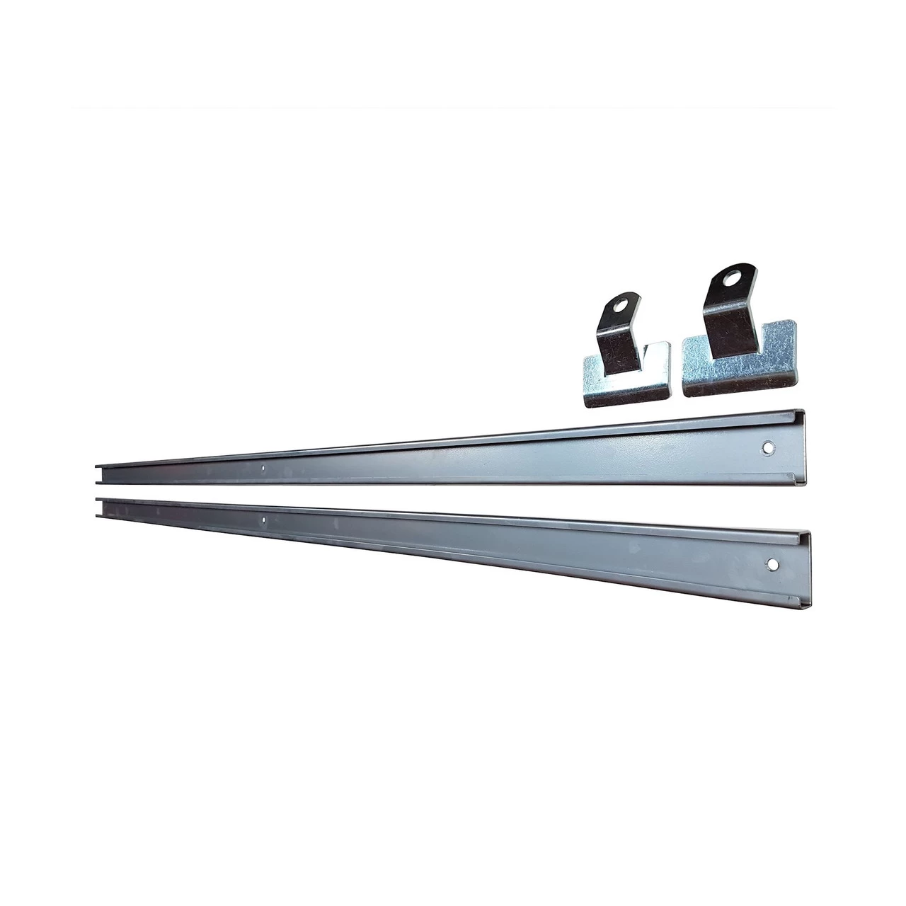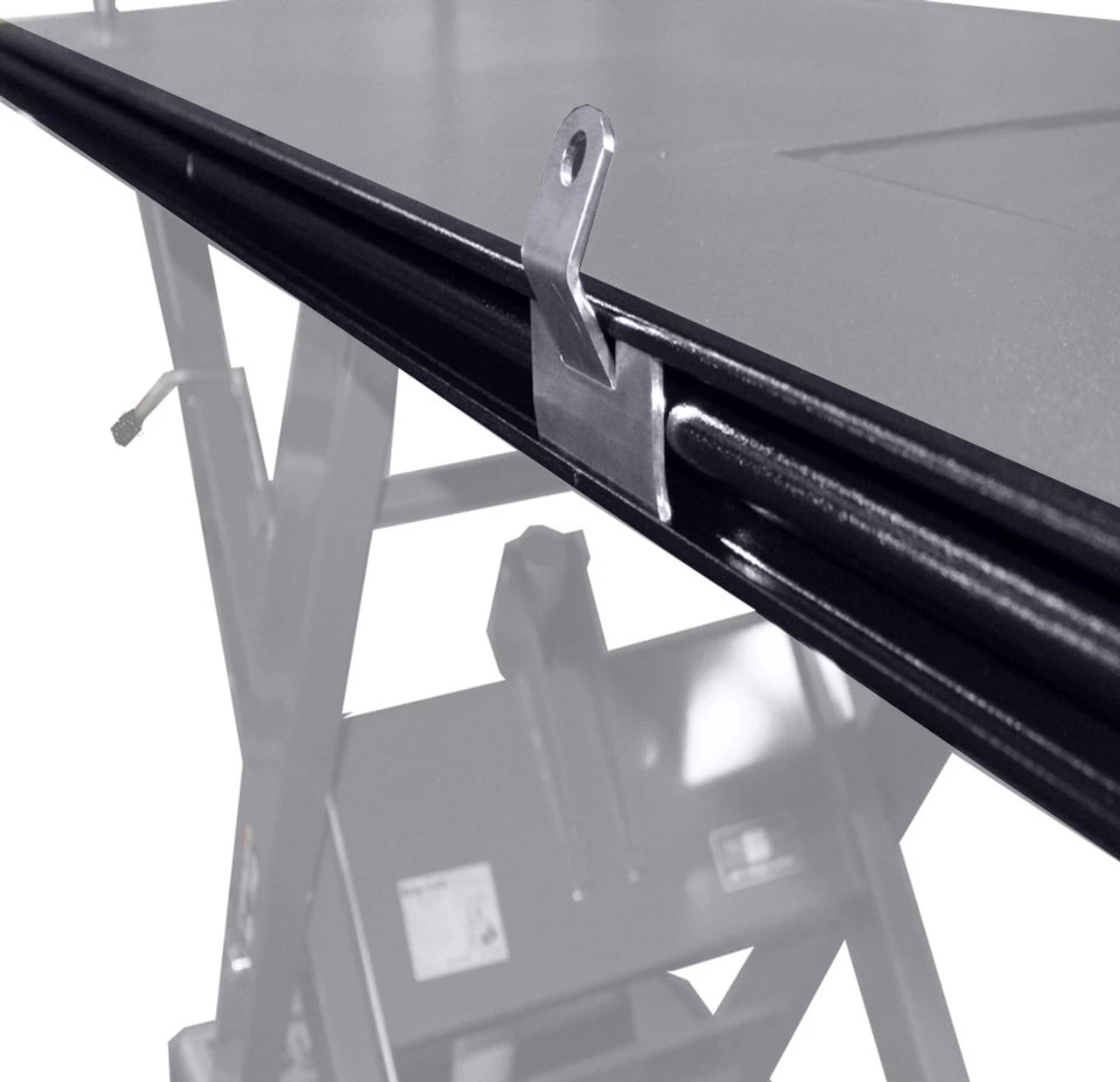 Rail kit to fit MGE50 and MGF50 motorcycle lifts. Supplied with one sliding hook for each side which can be used with tie-downs to secure bikes safely.
