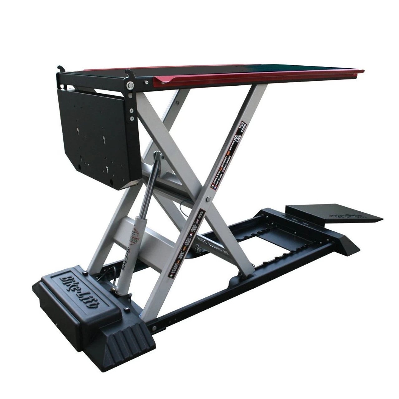 Features include: Integral electric pump; smooth, fast, quiet operation; slide away section for rear wheel access; automatic locking at 10 different heights; wired remote control.