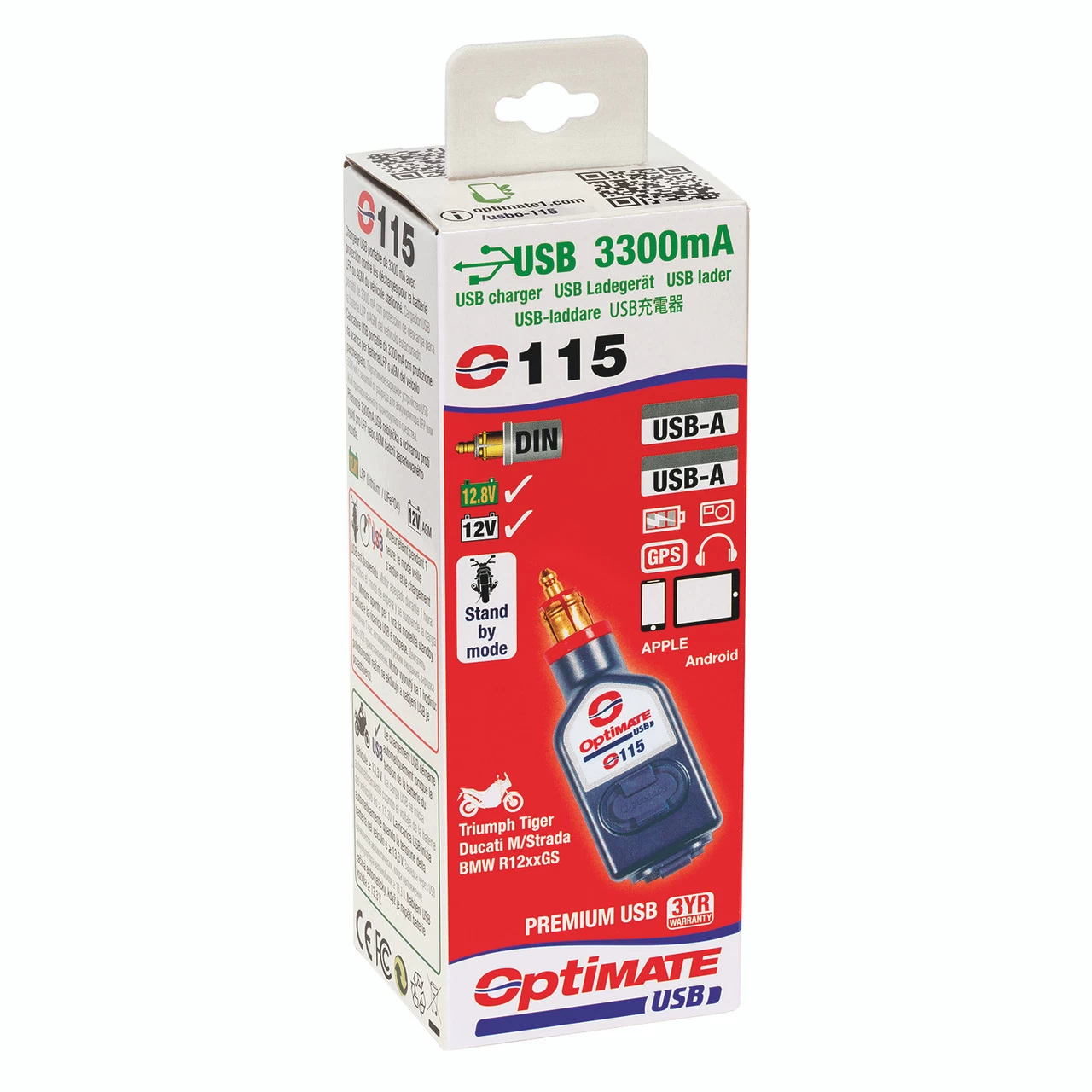 • Connects to Ø12mm DIN 12V socket found on BMW, Triumph and Ducati Multistrada motorcycles – Ideal for sockets with limited surrounding space