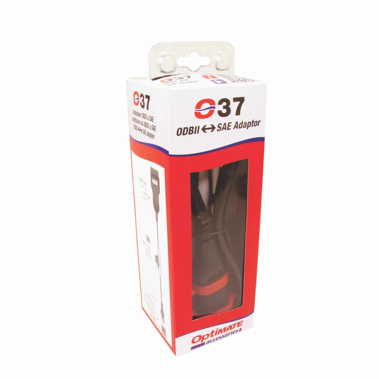 Converts a car or truck’s OBDII port located inside the cabin to an OptiMate SAE battery charger connector.