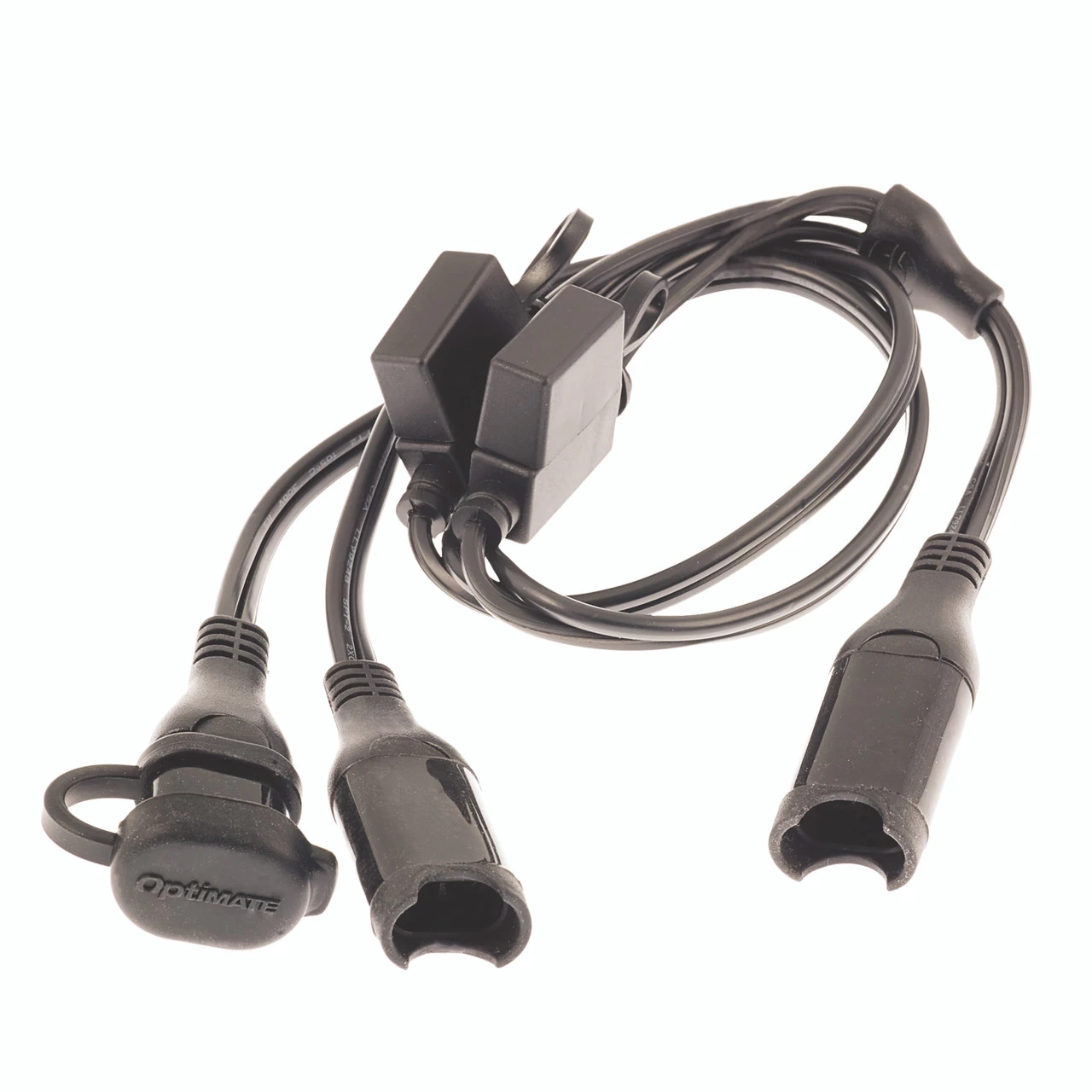 This weatherproof two into one lead enables you to connect an OptiMate accessory while leaving a free charge socket available, or to connect two accessory leads simultaneously.