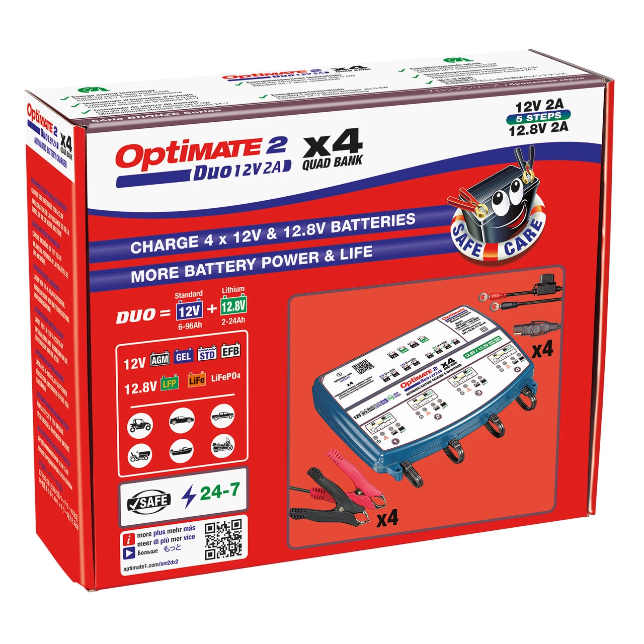 IDEAL FOR: 4x AGM, GEL & STD 12V batteries from 6 – 96Ah & lithium (LiFePO4) 12.8/13.2V batteries from 2 – 24Ah