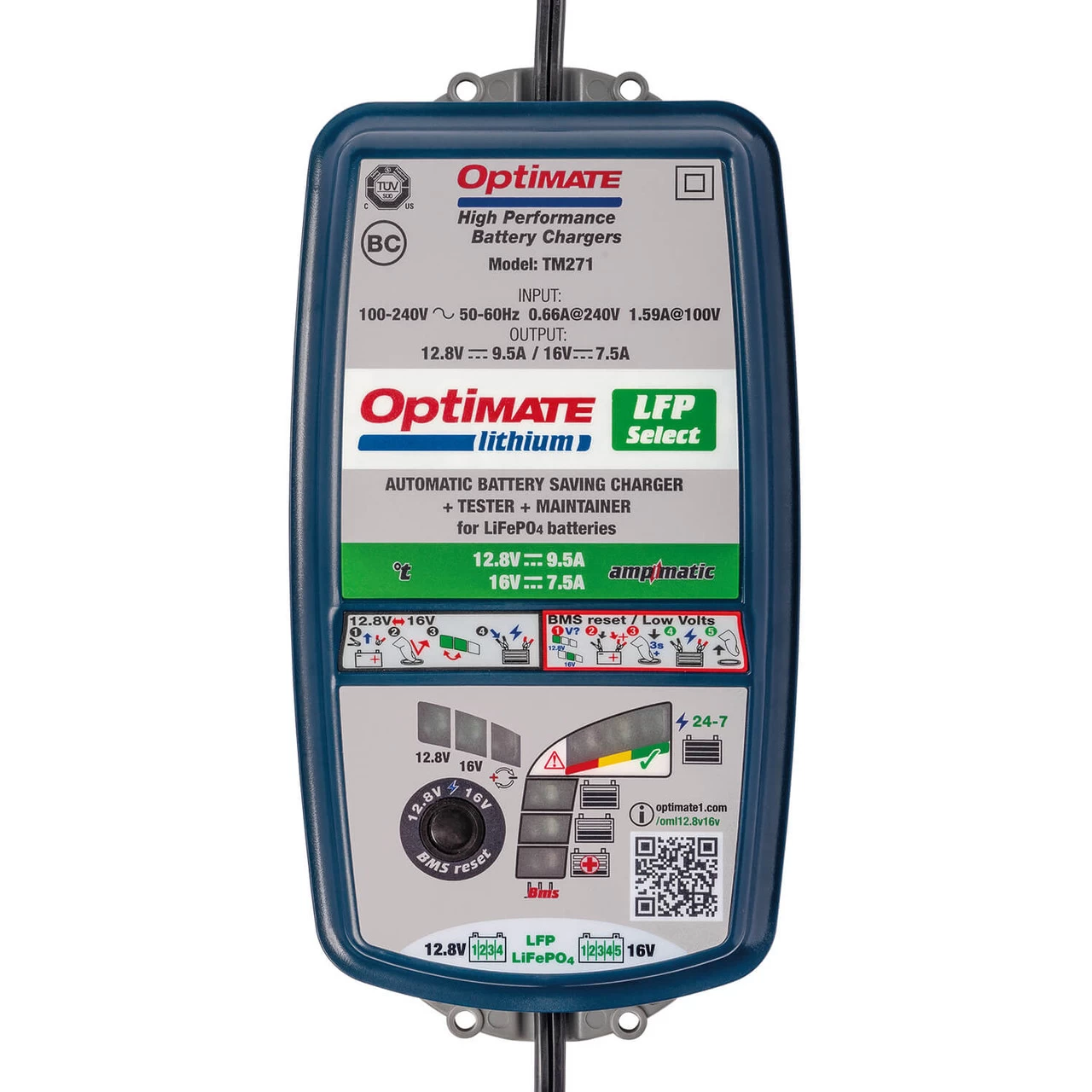 OptiMate Lithium Select is the advanced ‘PRO’ battery charger for the 12.8V & 16V LiFePO4 / LFP lithium battery in your performance / race motorcycles, cars or craft – The ultimate Lithium charger for the track!