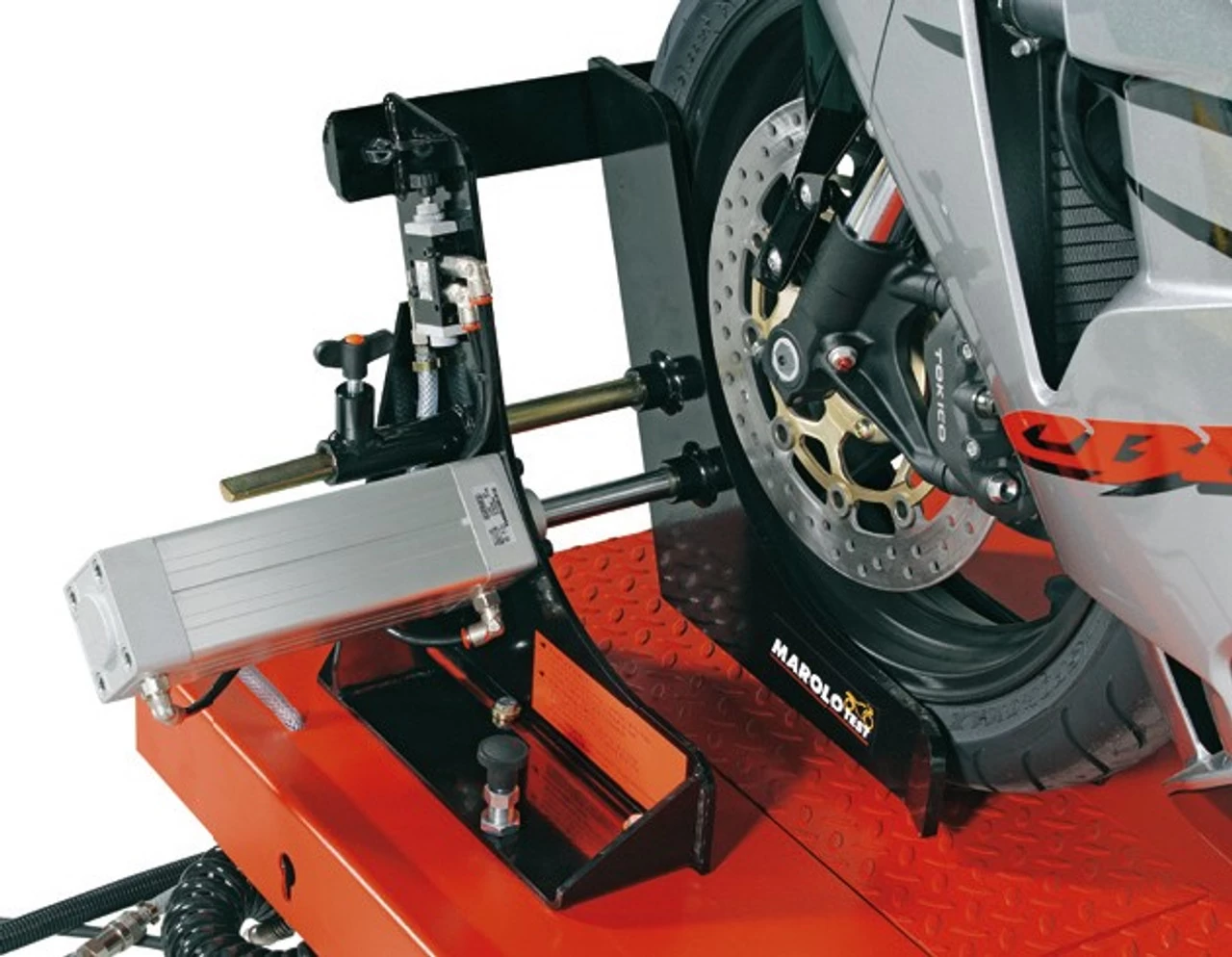 The high powered pneumatic cylinder will securely hold the motorcycle and can open up to 210mm to accomodate some alrger wheels.Â