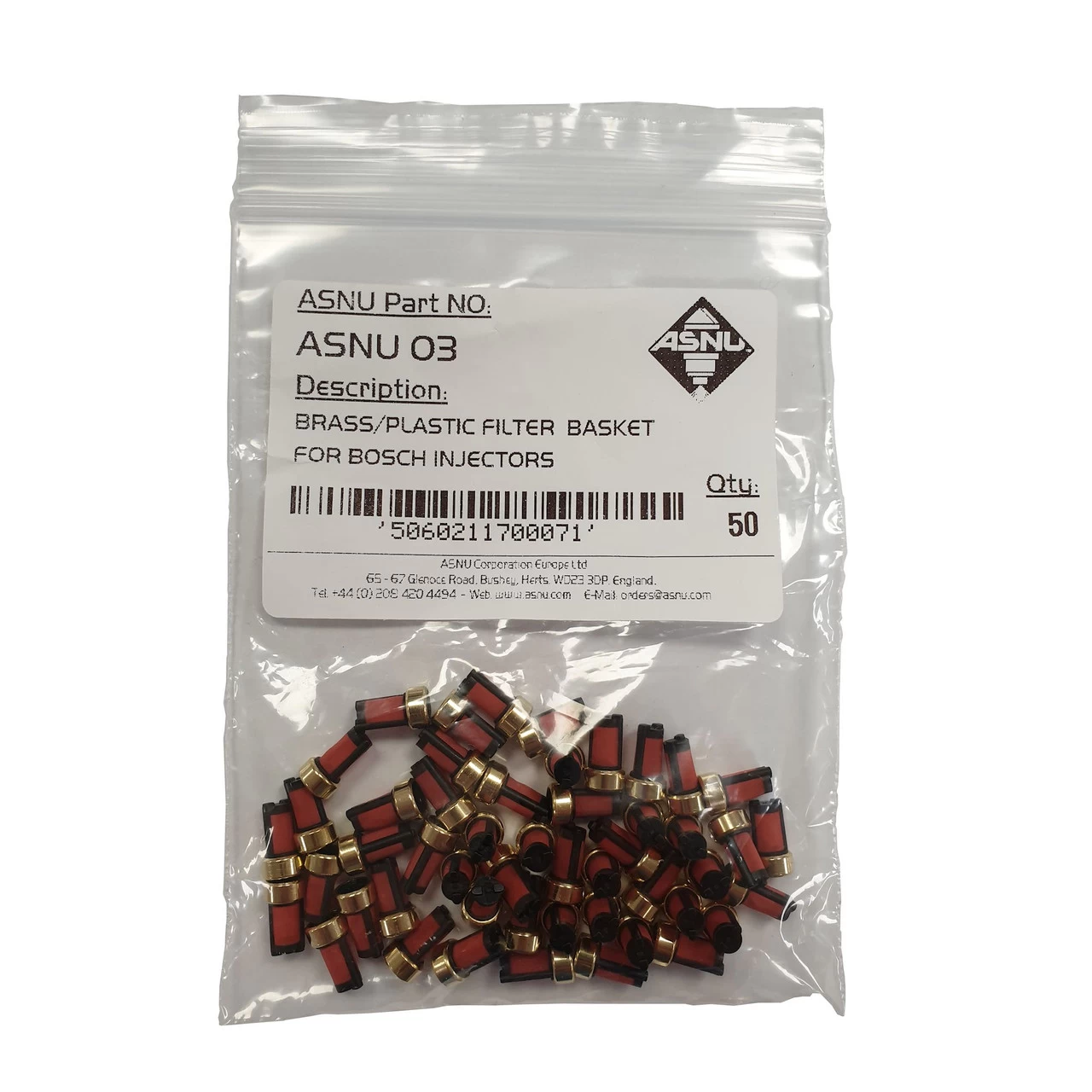 Filter basket for injector. 6mm brass ring, 10mm filter length.